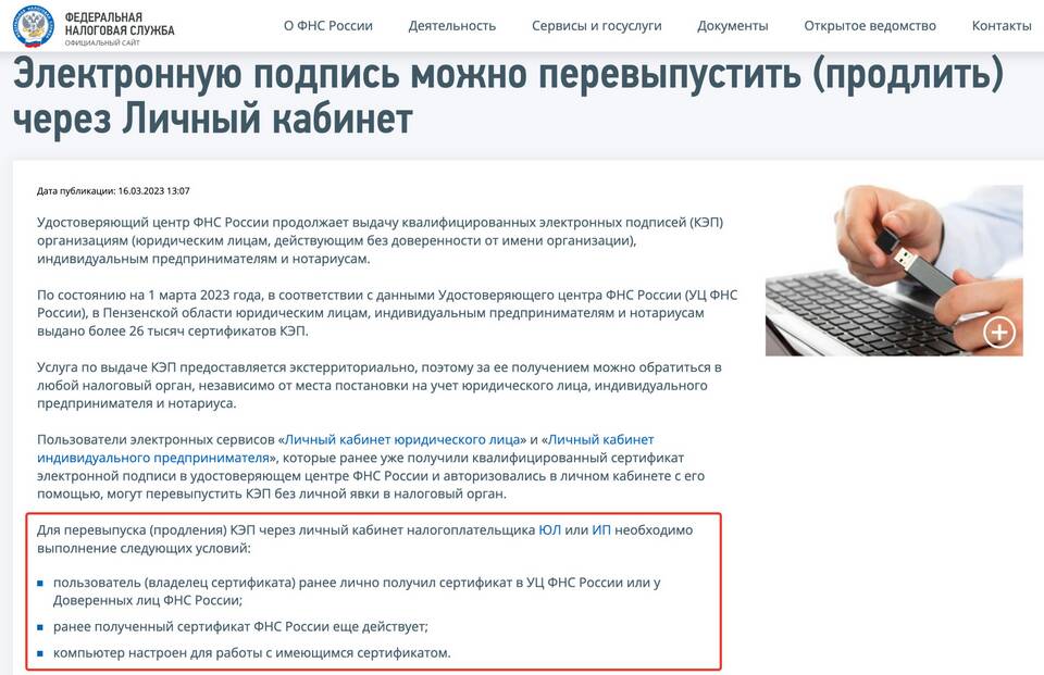 Процесс подписания в ЛК ФНС
